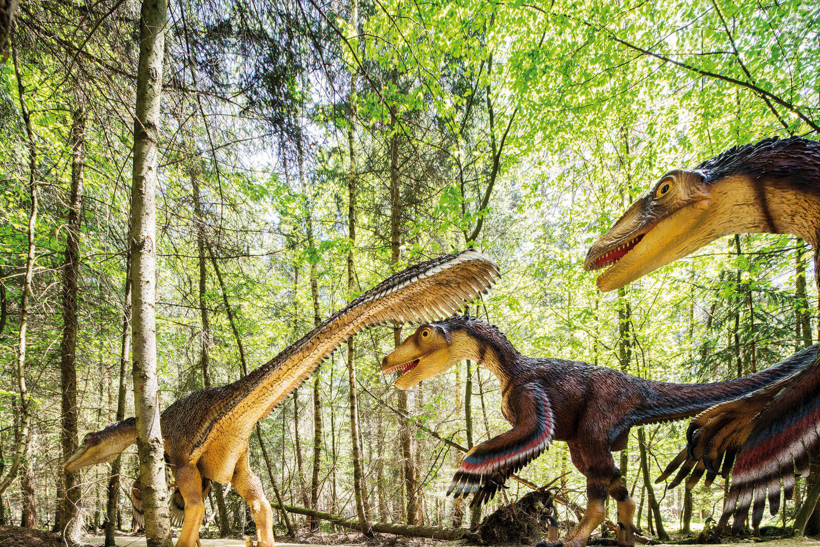 Im neuen Dinopark Altmühltal bei Denkendorf begibt man sich auf einem 1,5 Kilometer langen Erlebnispfad durch den Wald auf eine spannende Reise durch die verschiedenen Erdzeitalter – vom Erdaltertum über Trias und Jura bis in die Kreidezeit und schließlich die Erdneuzeit.