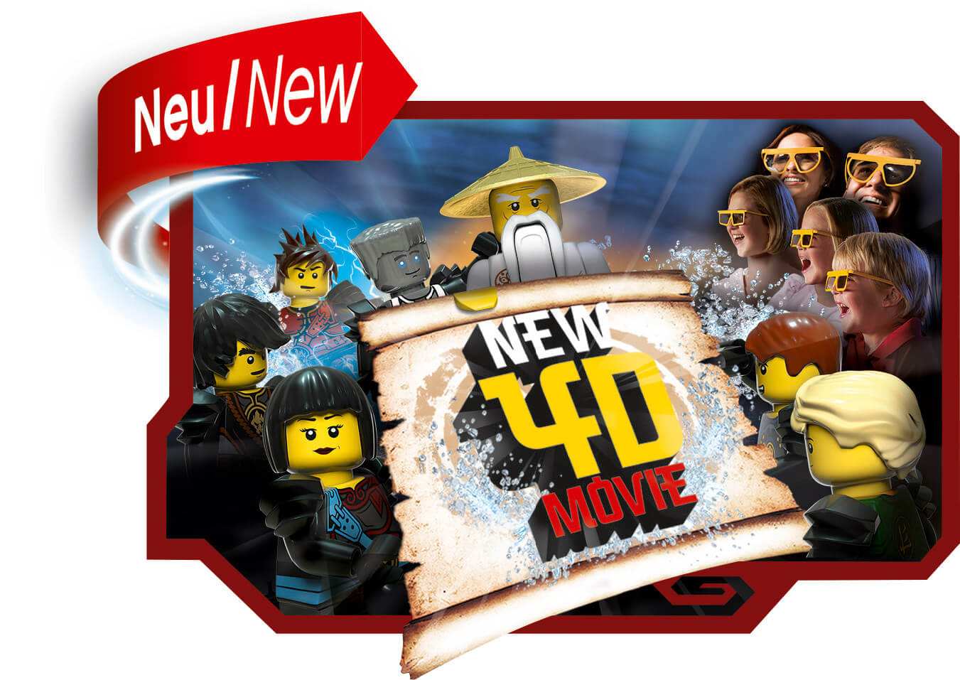 Angelehnt an den erfolgreichen LEGO NINJAGO Movie präsentieren die LEGO Studios in dieser Saison ein elfminütiges 4D-Abenteuer rund um die beliebte Ninja-Truppe.