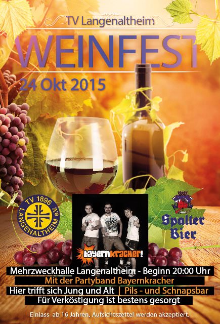 am Samstag, den 24. Oktober 2015 veranstalten wir in der Mehrzweckhalle Langenaltheim wieder unser bereits traditionelles Weinfest.