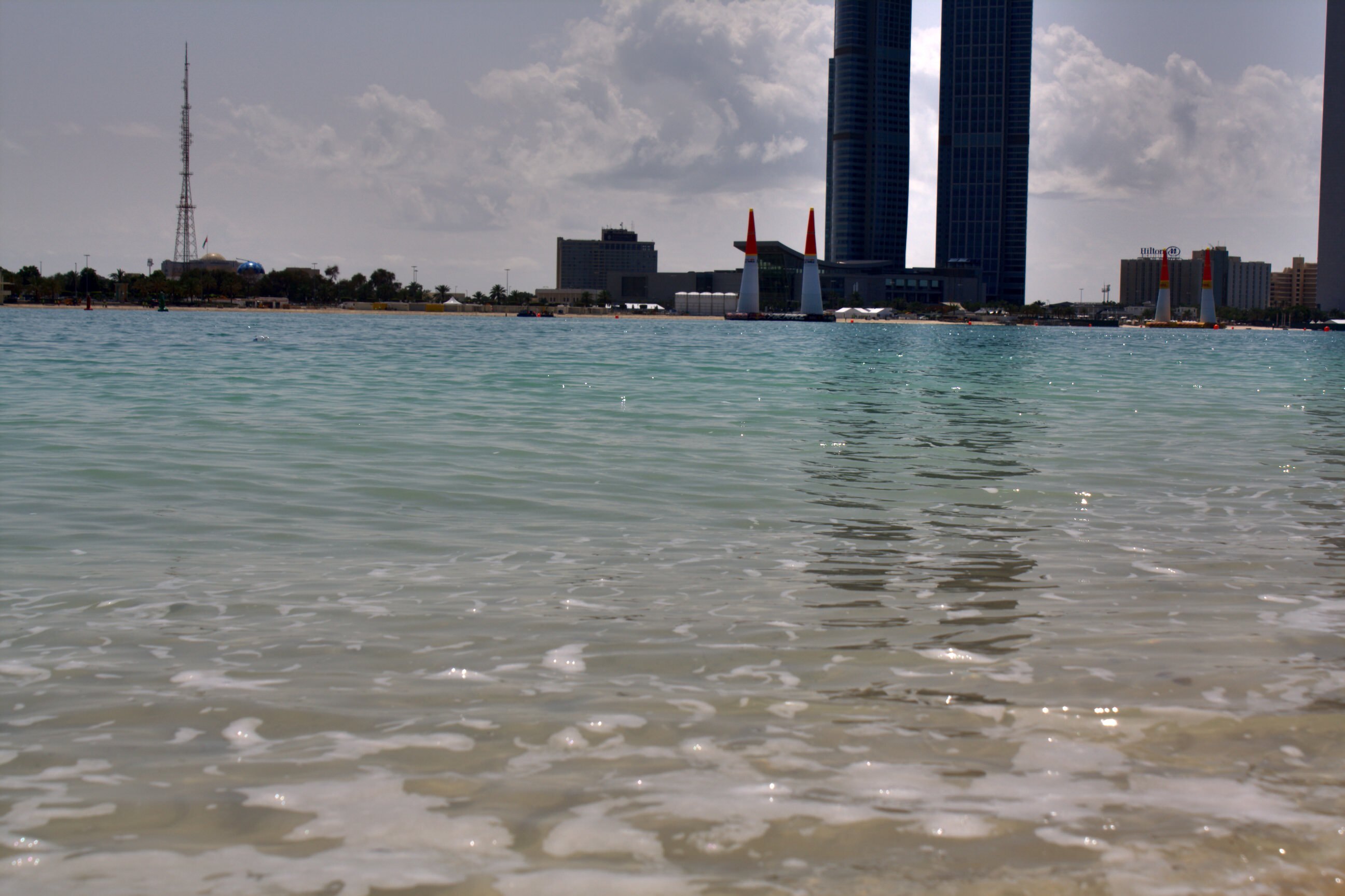 Der Kern der Stadt mit ihren 621.000 Einwohnern befindet sich auf einer 70 Quadratkilometer großen Insel im Persischen Golf, im Mangrovengürtel. Mit dem Festland verbunden ist sie durch die Mussafa-Brücke, die al-Maqtaa-Brücke und die Sheikh-Zayed-Brücke. Die Hauptinsel ist von einem Kranz künstlich erweiterter oder neu aufgespülter Inseln umgeben, die zurzeit erst zum Teil bebaut sind und das Siedlungsgebiet erweitern.
