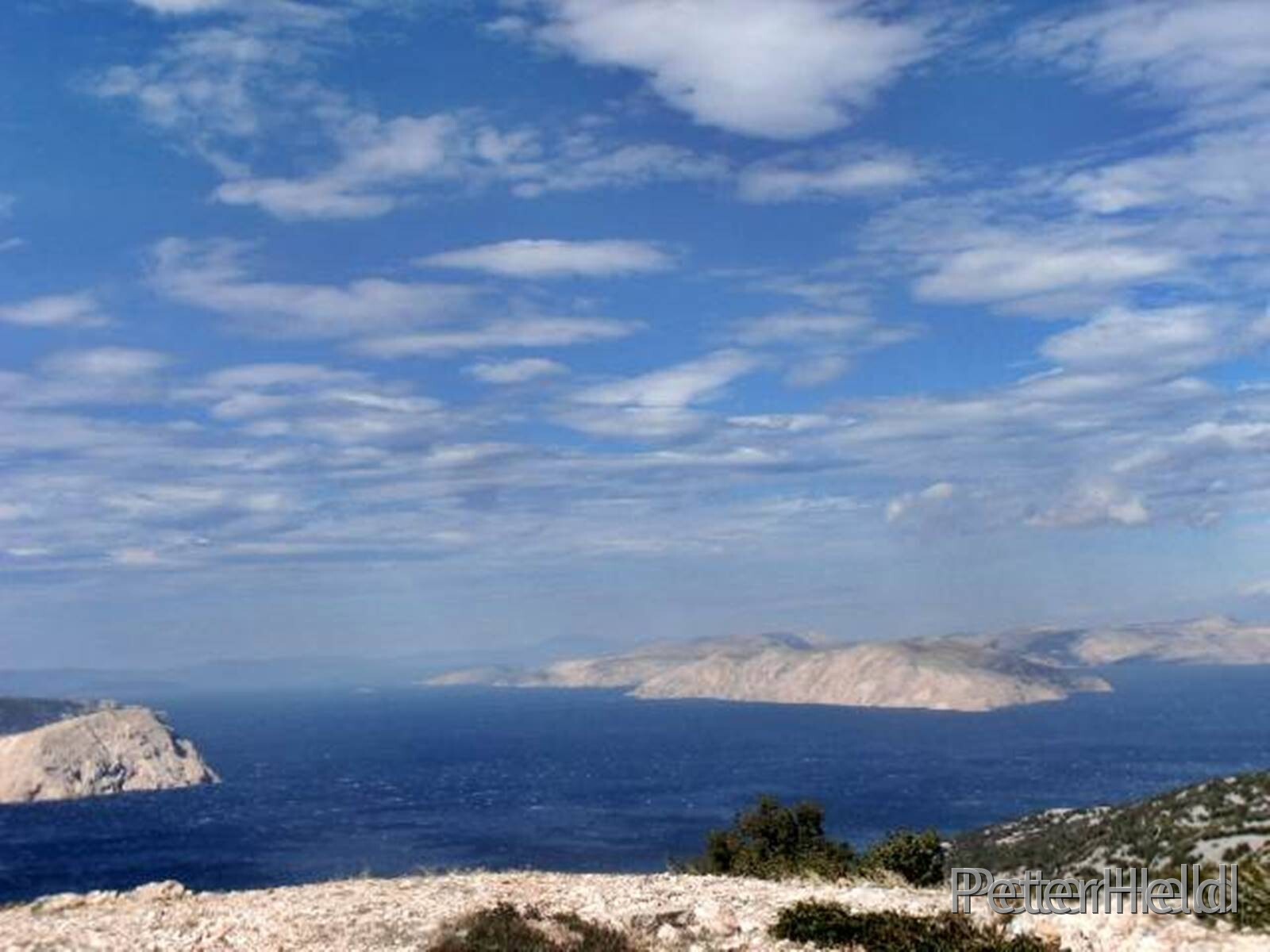Blick auf die kroatische Inselwelt von einem windigen Parkplatz zwischen Karlobag und Sv. Juraj
