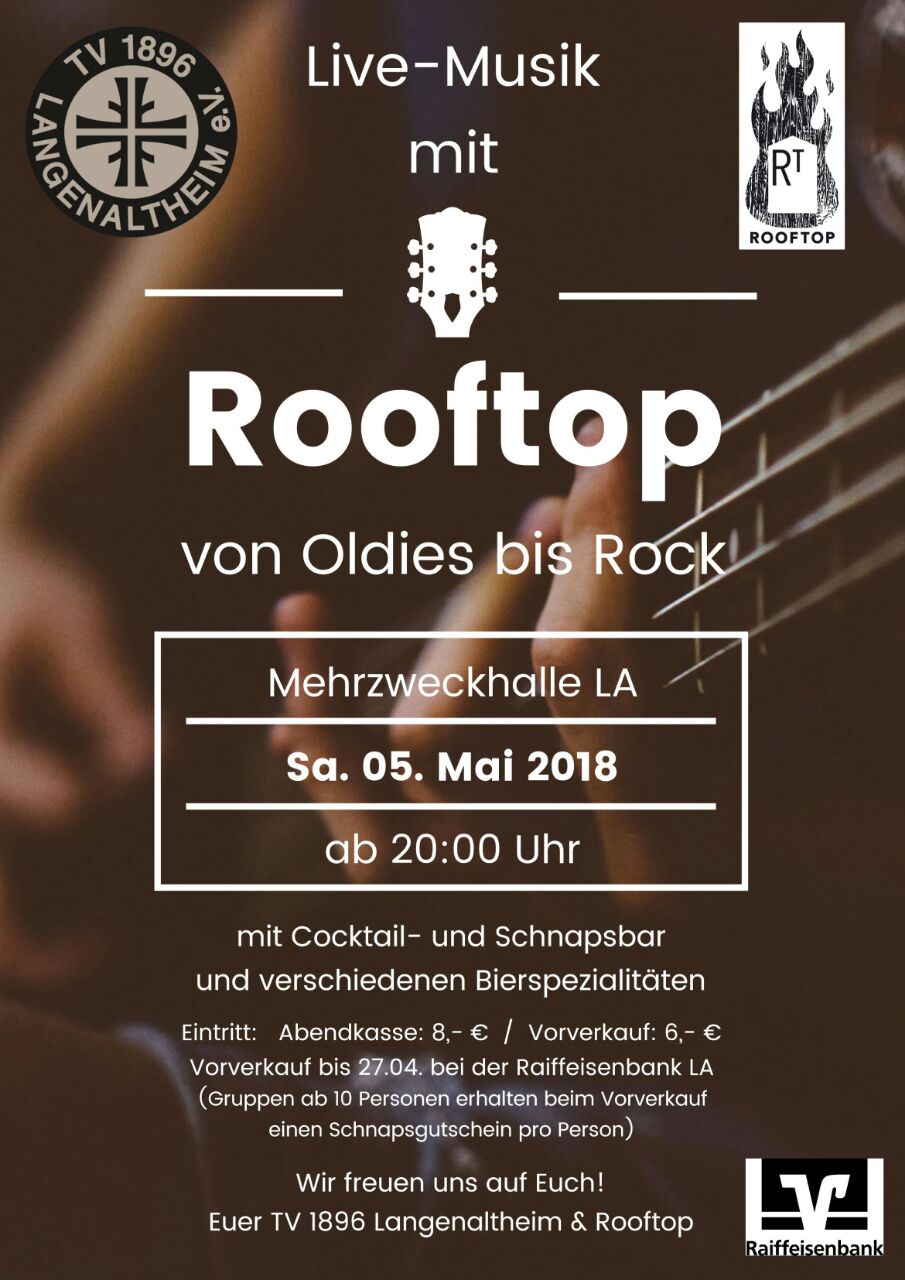 Termin ROOFTOP LIVE Samstag, 5. Mai 2018, 20:00 – 23:00 Mostpl. 2, 91799 Langenaltheim, Deutschland Bernd Posch 3. März 2018 um 18:57