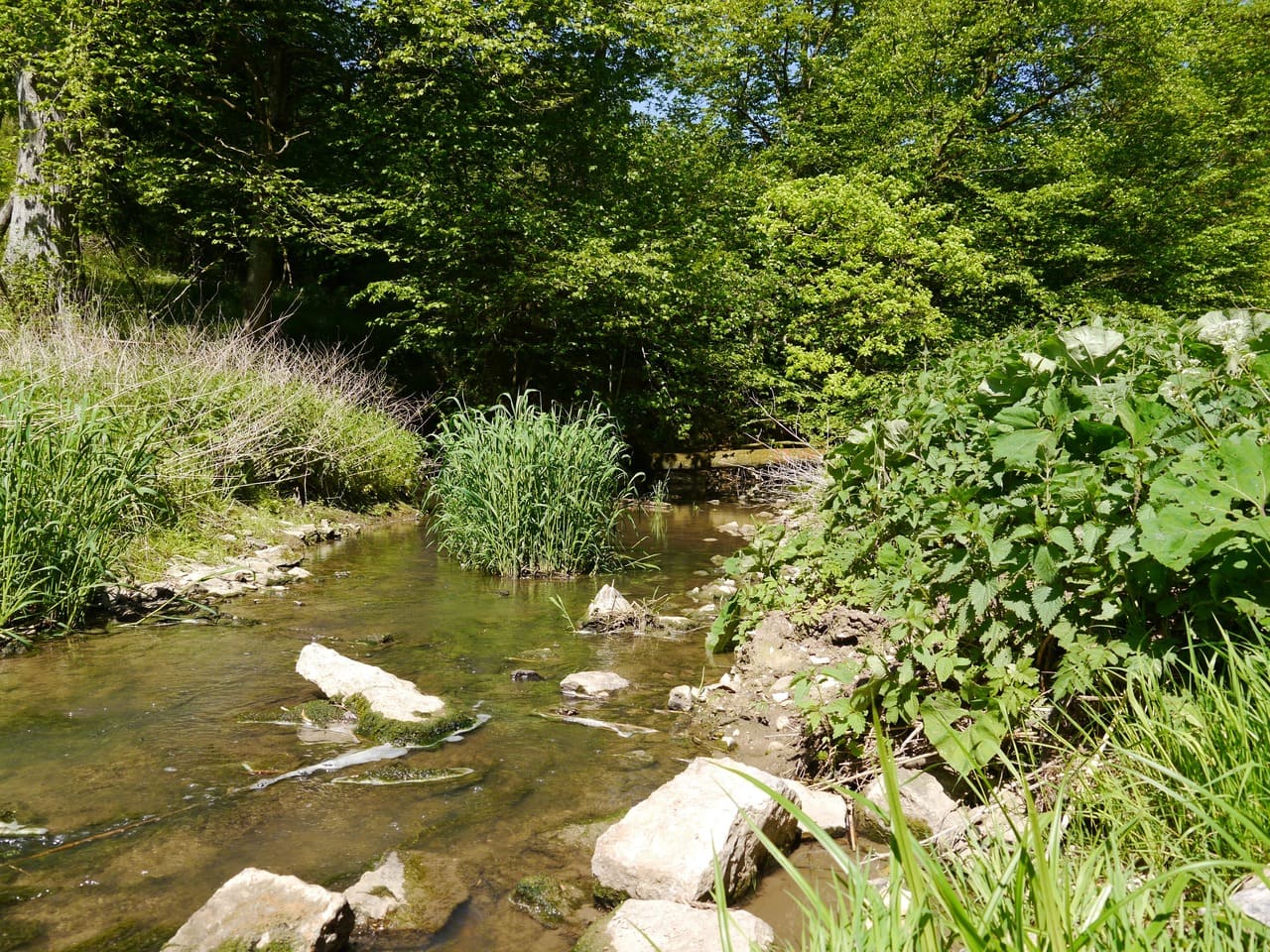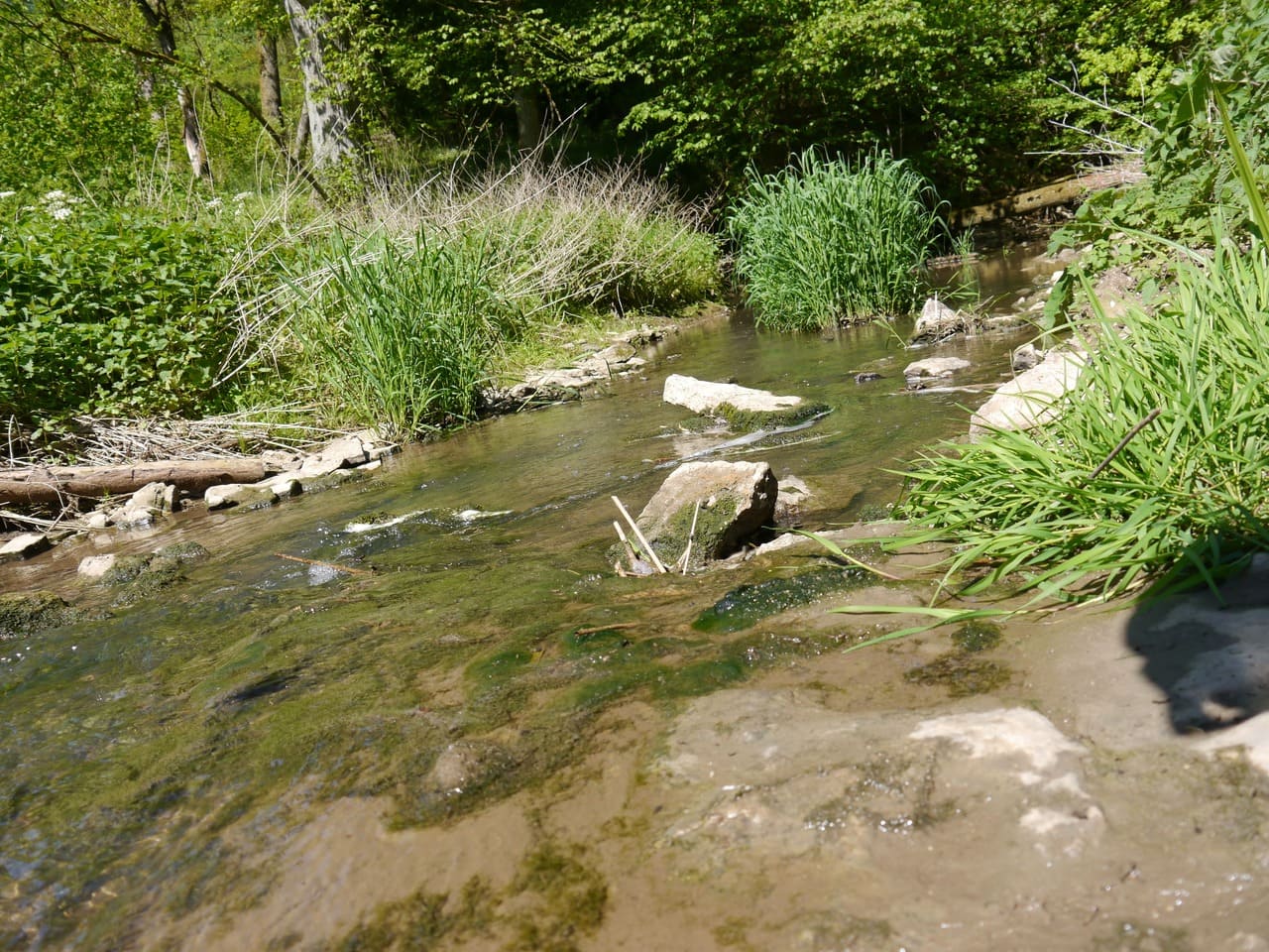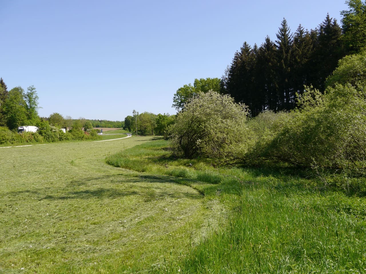 Etwa einen halben Kilometer nach den letzten Häusern des Dorfes, denen gegenüber auf dem linken Hügel ein Marmorbruch liegt, läuft von links die Talmulde des Schmalzgrabens zu, der allerdings am Unterlauf oft kein Wasser führt.