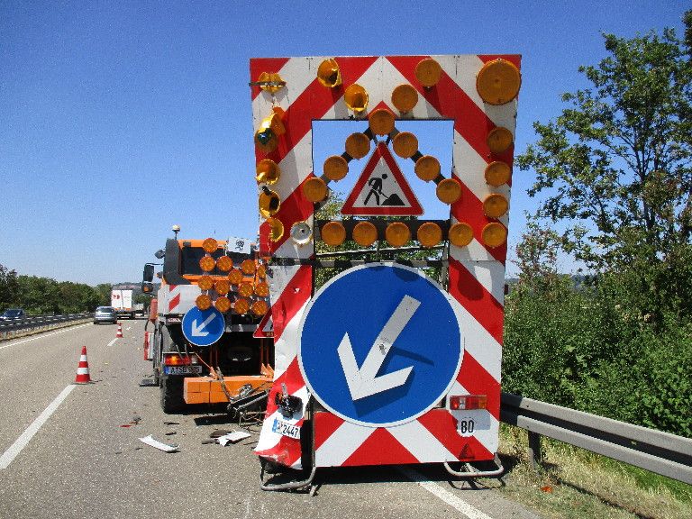 Großes Glück hatten ein 22jähriger Lkw-Fahrer und ein 31jähriger Mitarbeiter der Straßenmeisterei, dass bei einem Verkehrsunfall auf der B 2 nur Sachschaden entstand. Der 32 jährige war zu Mäharbeiten auf der B 2 zwischen der Anschlussstelle B 16 und Nordheim unterwegs.