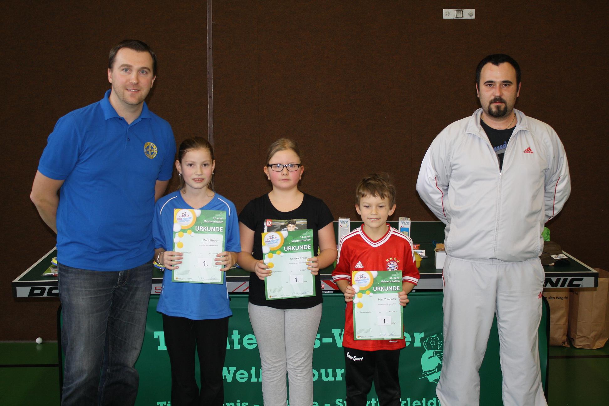 Die Altersklasse 2005 und jünger war das teilnehmerstärkste Feld, hier gingen 10 Jungen und 4 Mädchen an den Start. Bei den Mädchen konnte sich am Ende in einem spannenden Duell - Mara Posch knapp gegen Elena Obernöder durchsetzen und sich somit den Turniersieg sichern. Sieger in der Jungengruppe wurde der erst 6-jährige Tom Zolnhofer, der im Finale Moritz Mößner besiegte und ungeschlagen Turniersieger wurde. Beide Spieler durften sich zusätzlich bereits über Spieleinsätze in der Bambinirunde erfreuen, wo der TV Langenaltheim eine Mannschaft gemeldet hat.