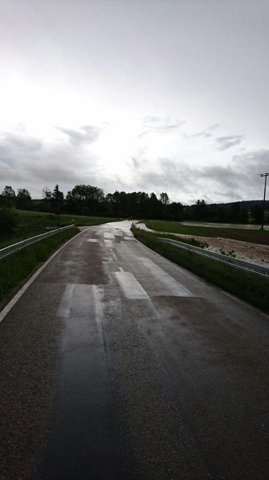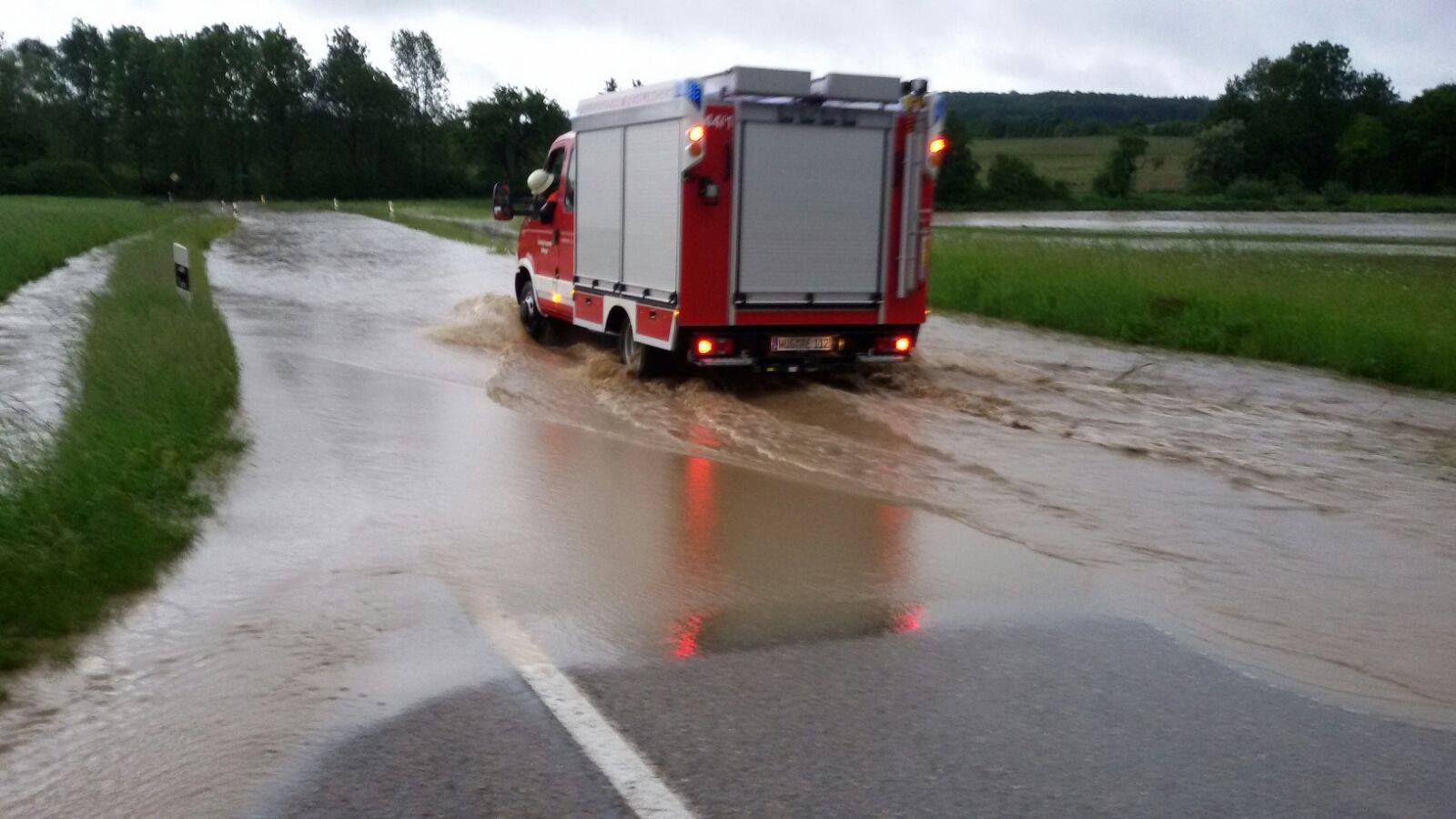 Auf der Kreisstraße WUG 7 von der B 2 in Richtung Langenaltheim sammelte sich in einer Senke durch den Starkregen Wasser auf der Fahrbahn (Höhe ca. 50 cm). Die Örtlichkeit wurde durch Einsatzkräfte der Feuerwehr Büttelbronn abgesichert, die nach Abfluss des Wassers auch die Fahrbahn reinigten. Die FFW Rehlingen hat die Straße abgesperrt und gereinigt(durch Energiehof Knoll). Bei den Einsätzen wurden weder Personen verletzt, noch entstand Sachschaden.