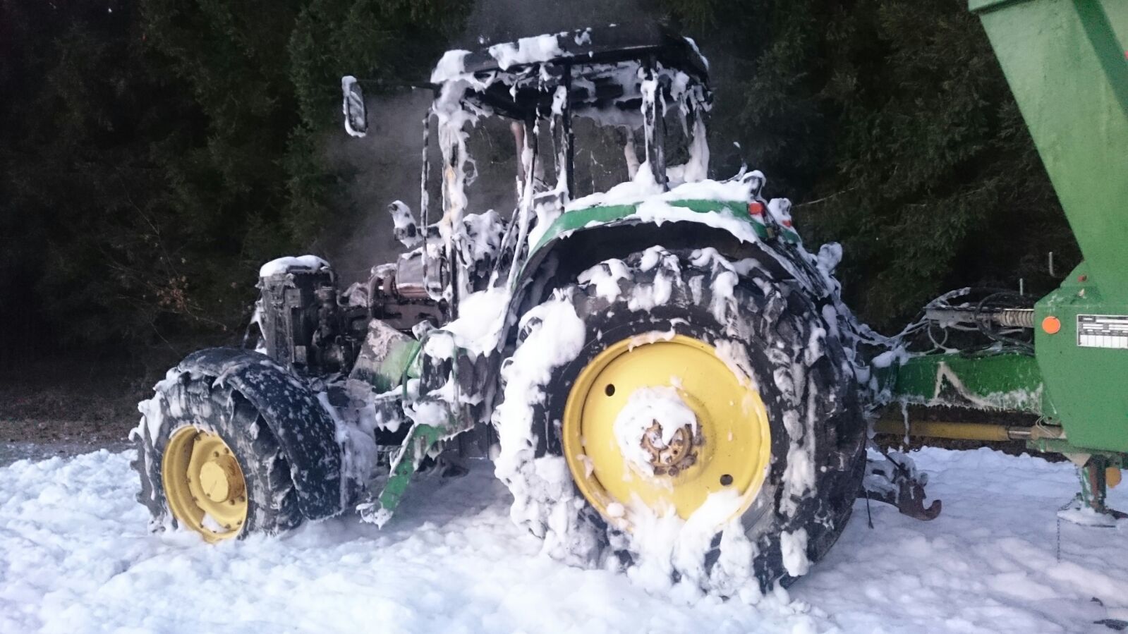 Der Landwirt fuhr mit dem Gespann noch auf dem Parkplatz als der Traktor Feuer fing und komplett ausbrannte. Die Freiwilligen Feuerwehren Treuchtlingen, Langenaltheim und Rehau waren mit ca. 30 Mann an der Einsatzstelle und hatten den Brand schnell gelöscht. Die Brandursache dürfte ein technischer Defekt im Motorraum des Traktors gewesen sein.