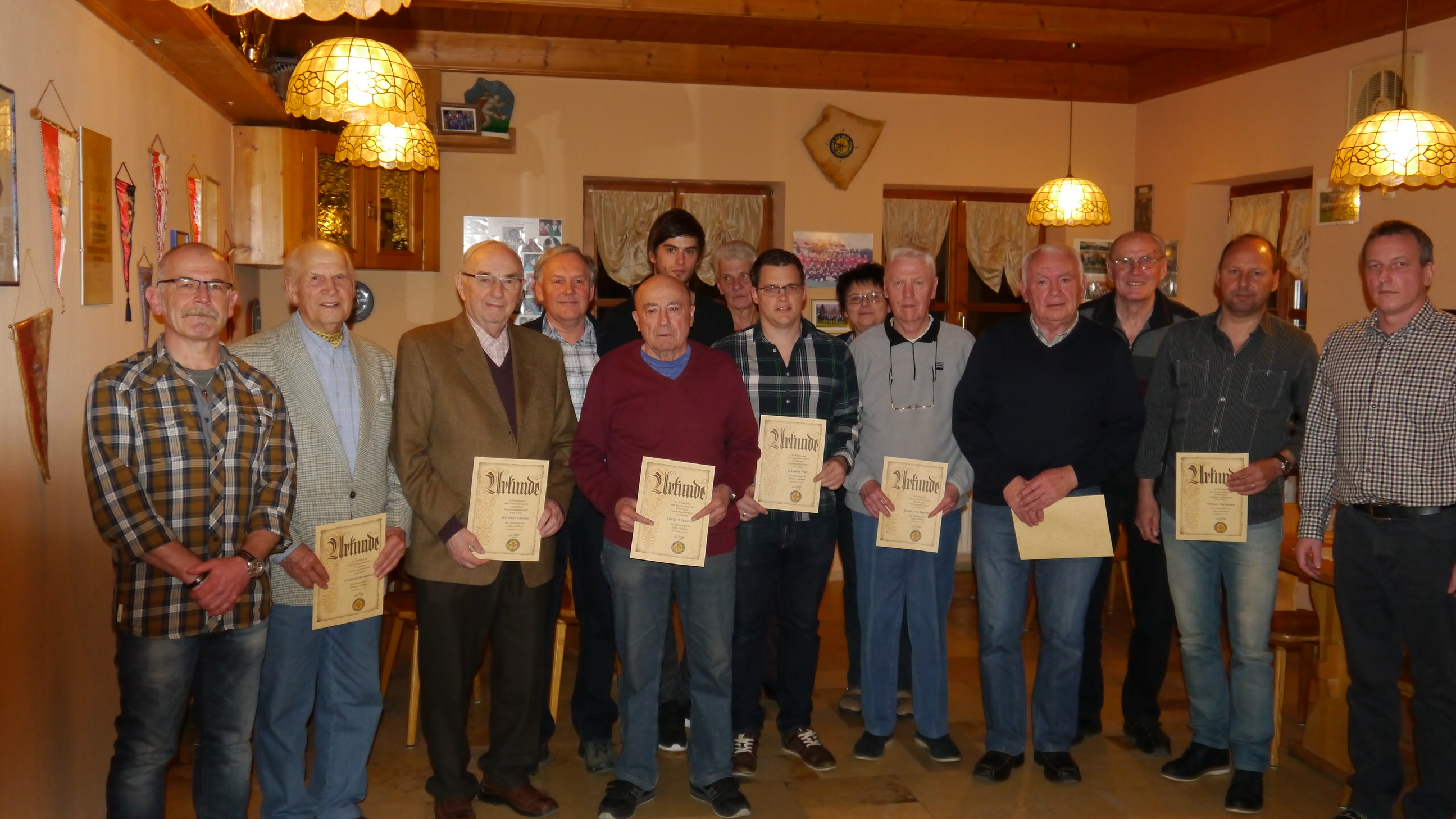 Zusammen mit seinem Stellvertreter Andreas Zolnhofer konnte der 1. Vorstand Günter Hadinger eine Vielzahl von Vereinsmitgliedern für ihre Treue und langjährige Mitgliedschaft ehren.
