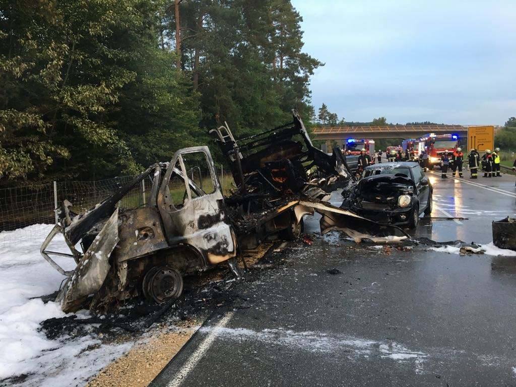Pleinfeld - Auf der Bundesstraße 2 nördlich von Pleinfeld ist es am Freitagabend zu einem schweren Verkehrsunfall mit mehreren Fahrzeugen gekommen.