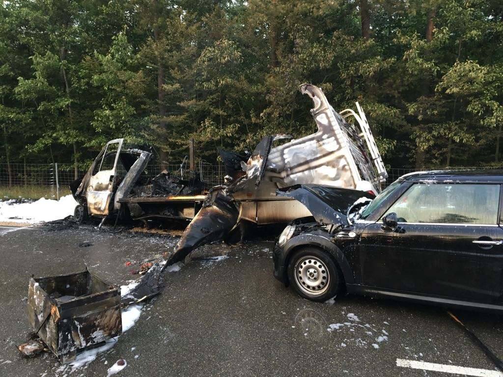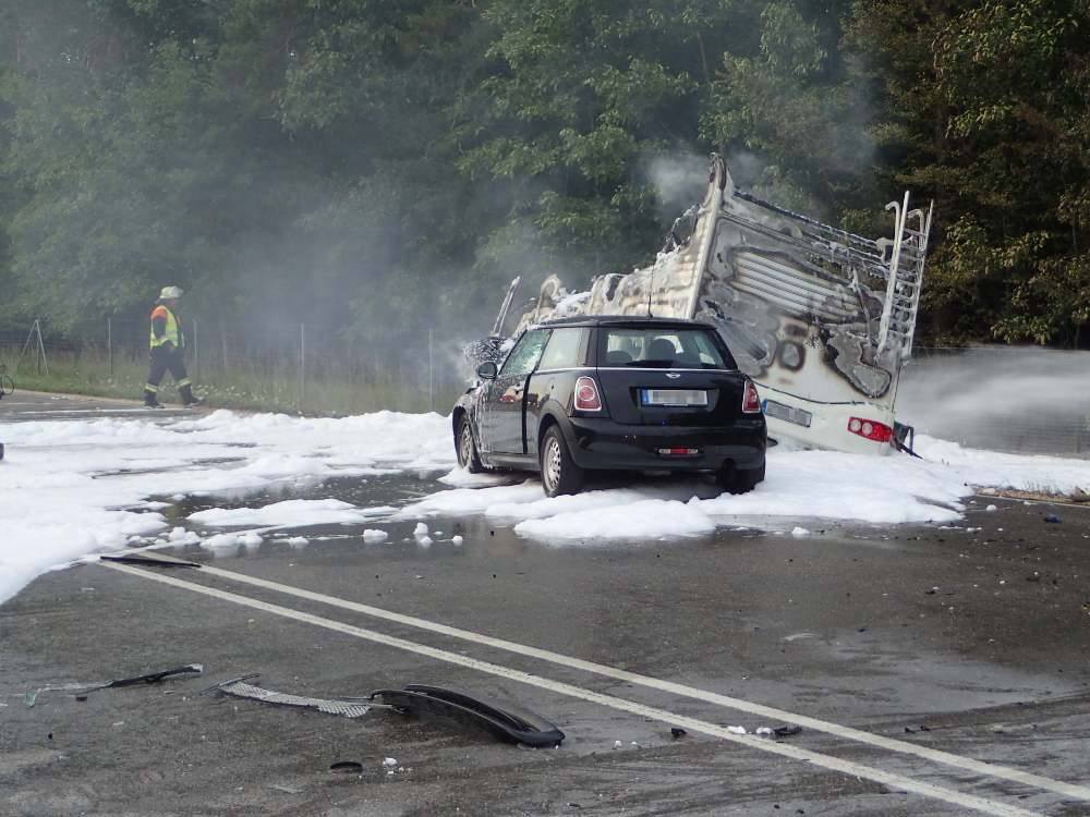 Ein hinter dem Wohnmobil fahrender Kleinwagen mit einer 25-jährigen an Bord konnte nicht mehr bremsen und fuhr auf das Wohnmobil auf.