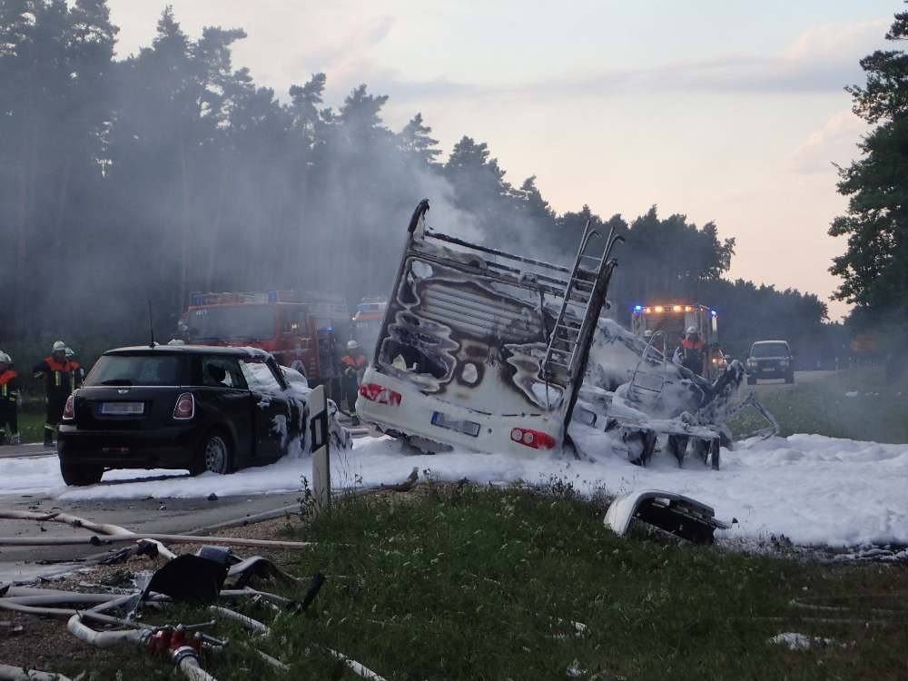 Mehrere Personen wurden bei dem Unfall schwer verletzt. Das Wohnmobil geriet in Brand und wurde durch die Feuerwehren Pleinfeld und Weißenburg gelöscht. Sowohl das Wohnmobil als auch der VW erlitten Totalschaden. Die Bundesstraße 2 war wegen der Aufräumarbeiten zeitweise voll gesperrt.