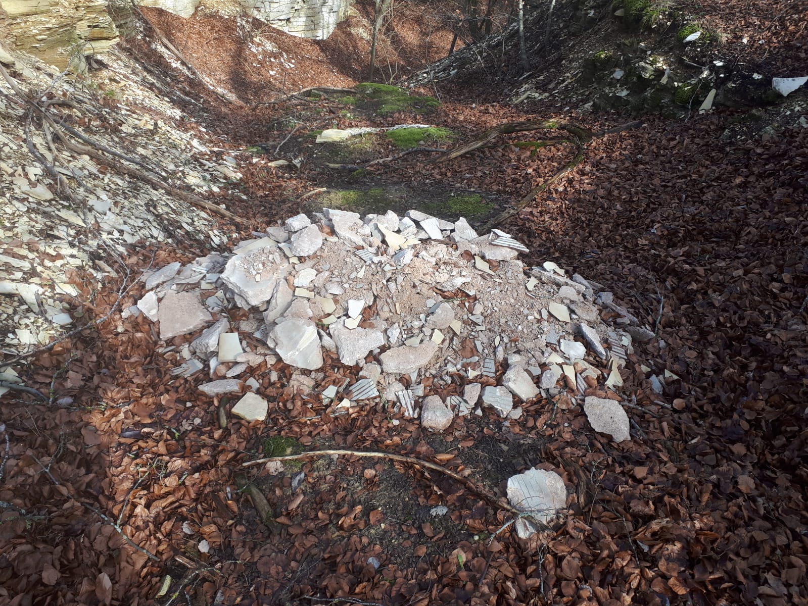 Langenaltheim - Anfang Februar entsorgte ein bislang Unbekannter in einem ehemaligen Steinbruchgelände, ca. 600 Meter südlich von Langenaltheim, Bauschutt. Es handelte sich um etwa 1 Kubikmeter herausgerissenen Fliesenboden (hellbraune Fliesen ca. 30x30 cm mitsamt Estrich), der mit einem geländetauglichen Fahrzeug (evtl. auch Traktor) dort hingebracht wurde.