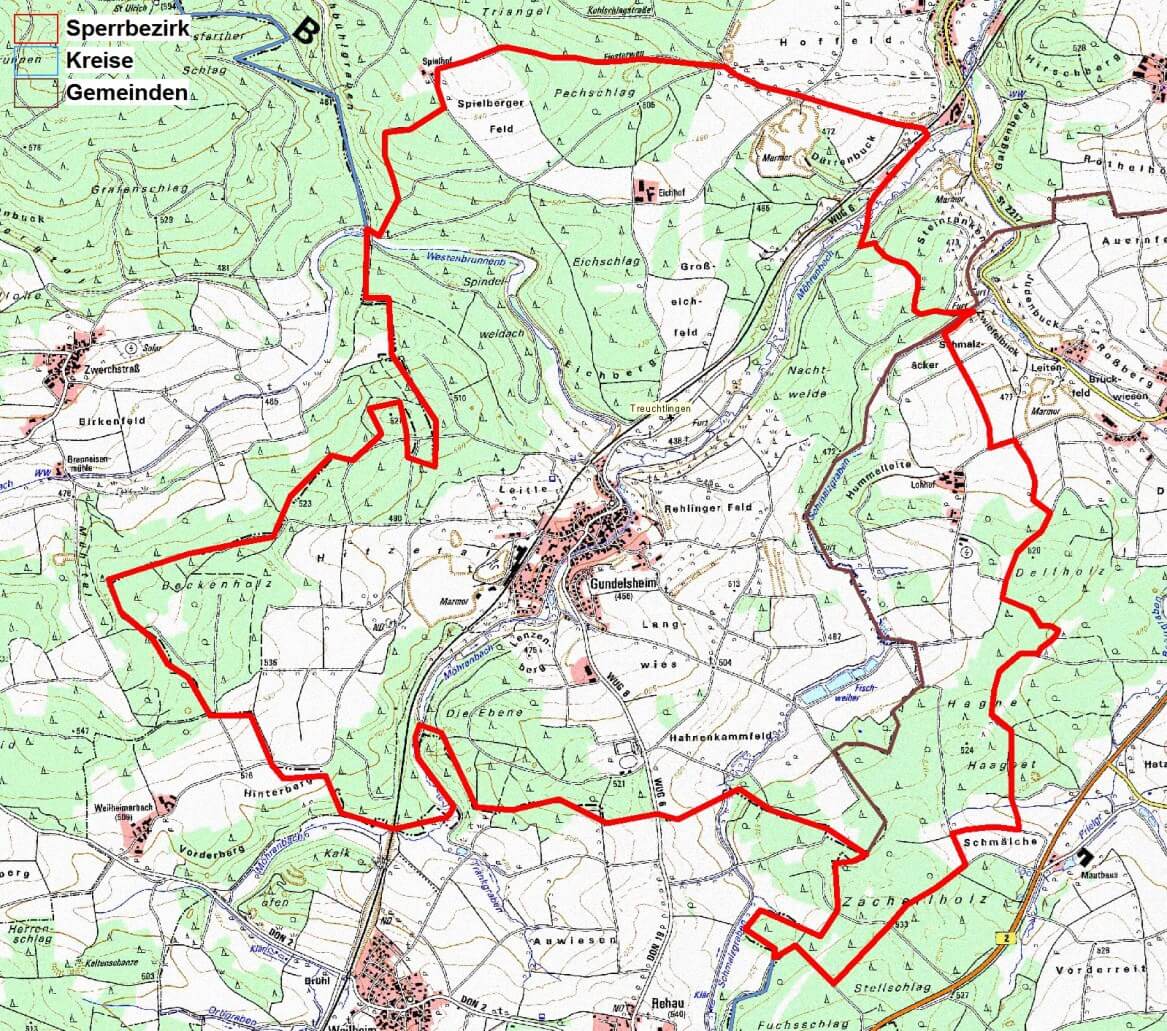 Betroffen sind Teile der Gemarkungen Gundelsheim und Möhren (Gemeinde Treuchtlingen) sowie Teile der Gemarkungen Rehlingen und Büttelbronn (Gemeinde Langenaltheim).