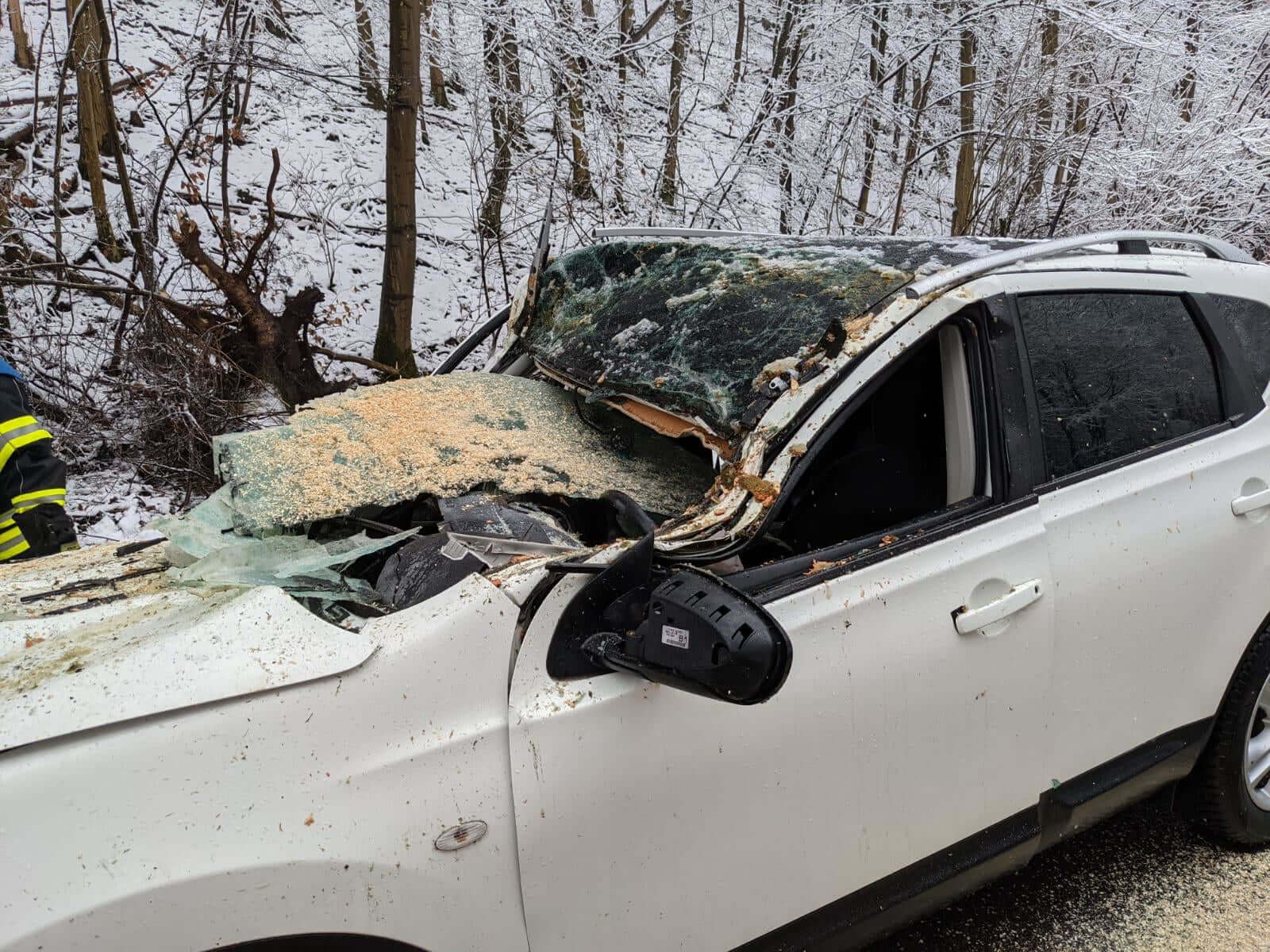 Im sogenannten Bärenloch stürzte vom Waldrand ein großer Baum auf das fahrende Auto.