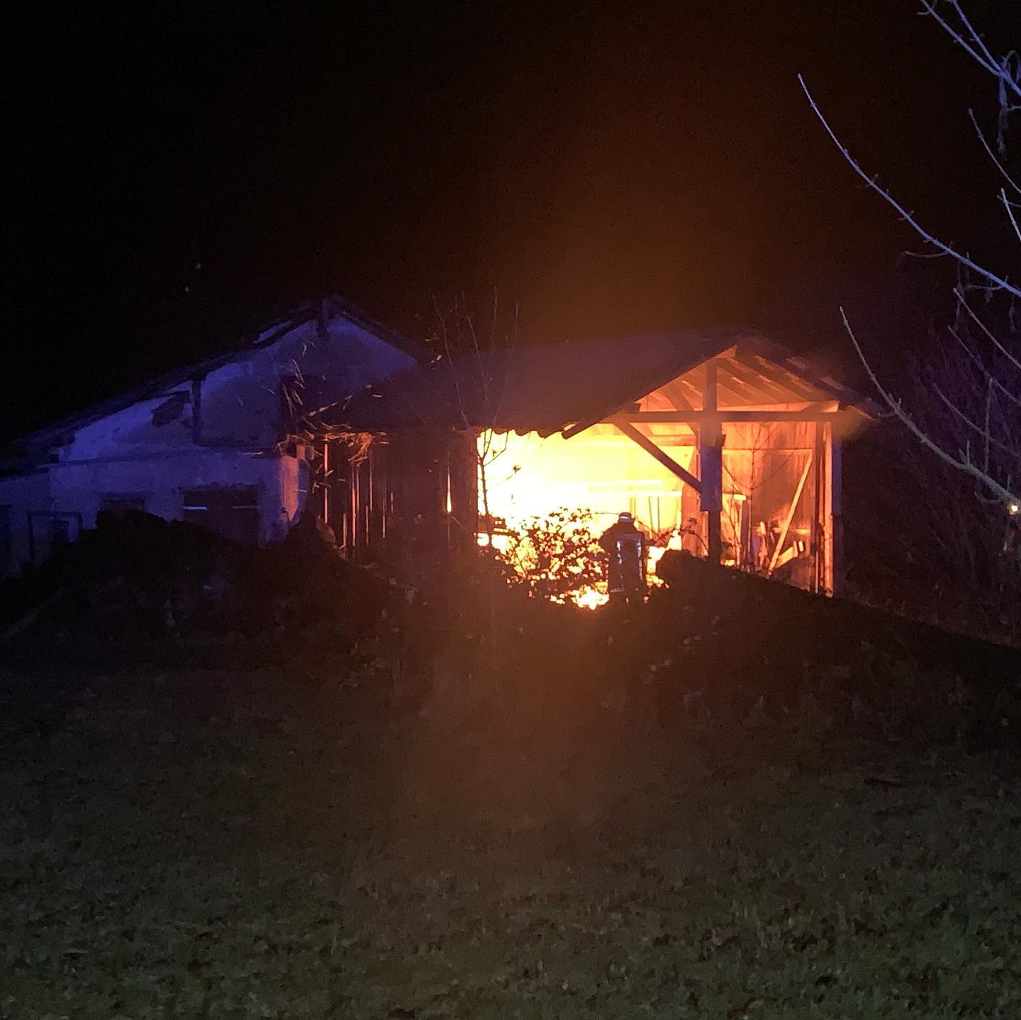 Langenaltheim - Kurz nach Mitternacht brach heute (12.03.2021) aus noch unklarer Ursache ein Feuer in einem offenen Holzschuppen in Langenaltheim aus.Die Polizei sucht Zeugen.
