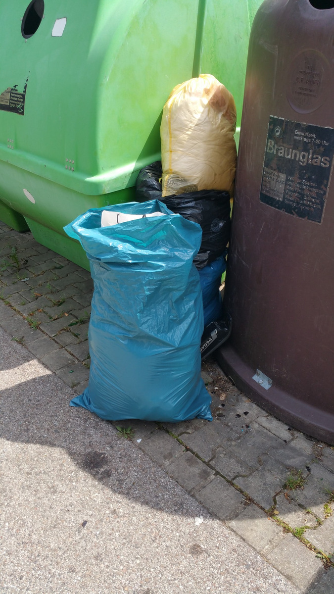 Hinweis: Bitte keine Altkleider oder Restmüll an den Glascontainern ablegen. Altkleider können zu den jeweiligen Öffnungszeiten Samstags im Wertstoffhof abgegeben werden.